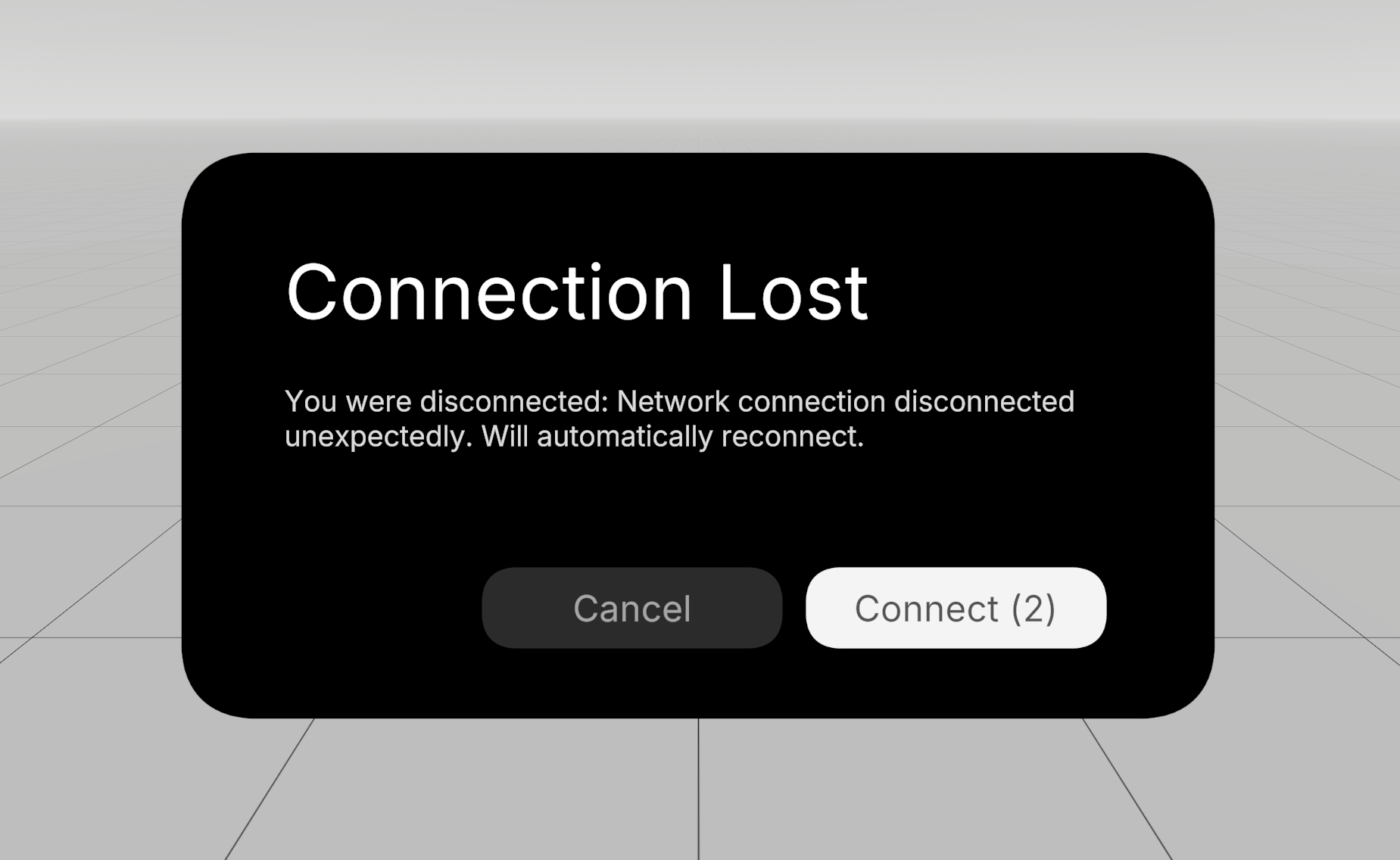 We now bundle an AutoReconnect component that can be used to automatically reconnect to a multiplayer room if a player gets disconnected. This component is great for reconnecting after a device goes to sleep.