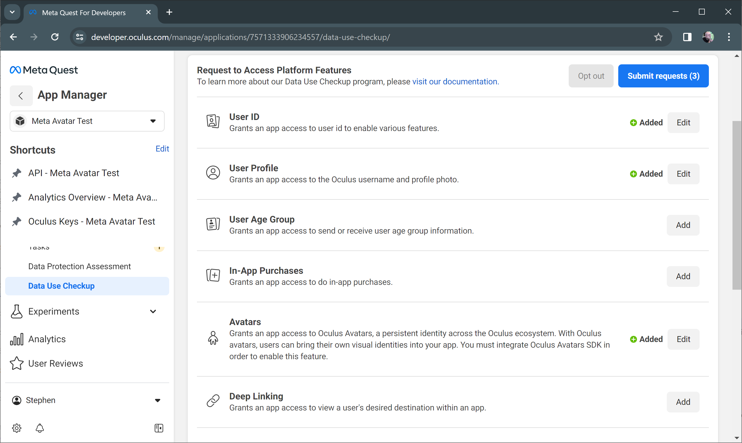 - You need to explicitly request permissions for services like Meta Avatars in the Meta Dashboard.
